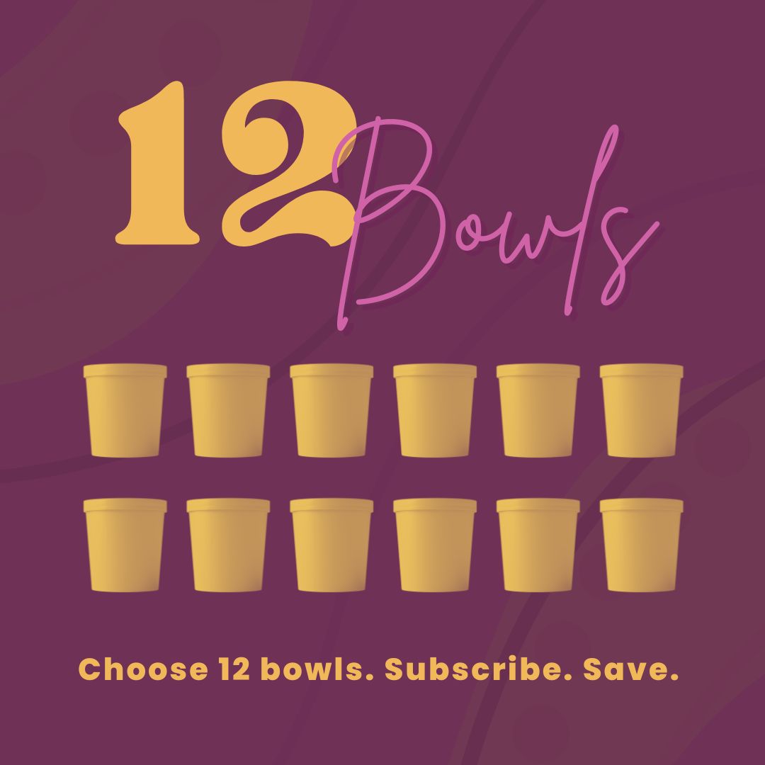 Weekly Subscription: 12 bowls delivered or available for pickup once every week.